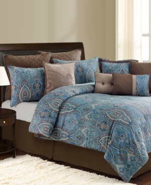 An exotic paisley print brings elegance and intrigue to the Budapest decorator set, featuring soothing tones of blue and brown. Quilted European shams, a soft coverlet and a plethora of decorative pillows embellish the look with plush polish....Budapest 12 Piece California King Decorator Set Bedding Home - Bed & Bath Bedding - Bed in a Bag... Click here or on the image for details |